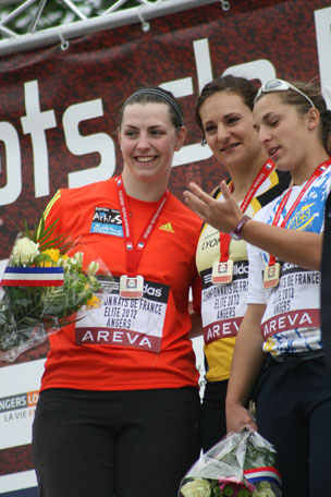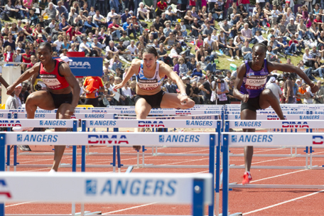 Cinq athlètes en 9 centièmes à l’arrivée du 100 mètres haies. On attendait Sandra Gomis, elle termine au pied du podium (4e). C’est Alice Decaux qui est sacrée championne de France en 12’’88 (temps qualificatif pour les championnats d’Europe, à 3 centièmes des minima pour les JO de Londres). Le tout devant Aisseta Diawara (dans le même temps) et Reina-Flor Okori (12’’97).