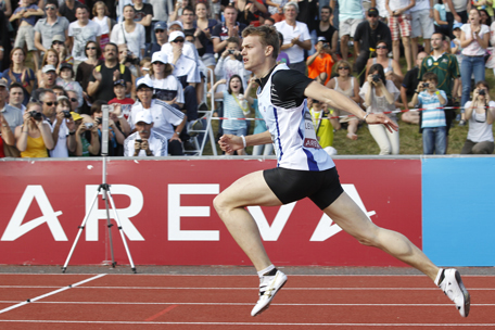 Il était attendu, il n’a pas déçu. Christophe Lemaitre fait trembler le chrono et le public angevin en titillant son record de France du 100m de 2 centièmes. Il s’impose en 9’’94 (vent trop favorable de 2,6m/s), devant Jimmy Vicaut (10’’05) et Emmanuel Biron (10’’10). Quelques minutes plus tôt chez les filles, en l’absence de Véronique Mang, la tenante du titre blessée, Myriam Soumaré devient championne de France en 11’’21, devant l’inoxydable Christine Arron qui décroche son billet pour les championnats d’Europe qui se tiendront dans quinze jours à Helsinki.