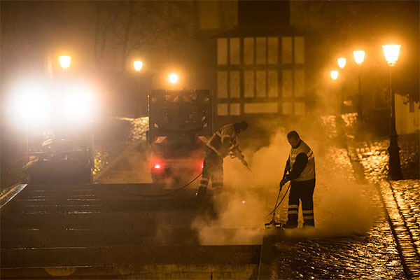 Pour réaliser cette campagne, le photographe Didier Depoorter a réalisé pas moins de mille clichés, en accompagnant les équipes municipales dès leur prise de service à 5h30. Après une sélection drastique, seuls trois ont été retenus (visibles ci-contre, cliquer sur l'image pour l'agrandir). Ils ont pour cadre la place du Ralliement, la montée Saint-Maurice et la rue Lenepveu, et seront visibles jusqu'au 29 mars.