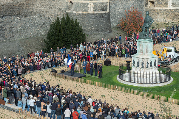 C'est donc ce samedi 8 novembre que la statue a été réinstallée, cette fois au milieu de la place, à quelques dizaines de mètres de sa position d'origine. L'opération, spectaculaire, a été menée grâce à une grue positionnée rue Toussaint, et suivie en direct par plusieurs centaines d'Angevins venus assister à l'événement.