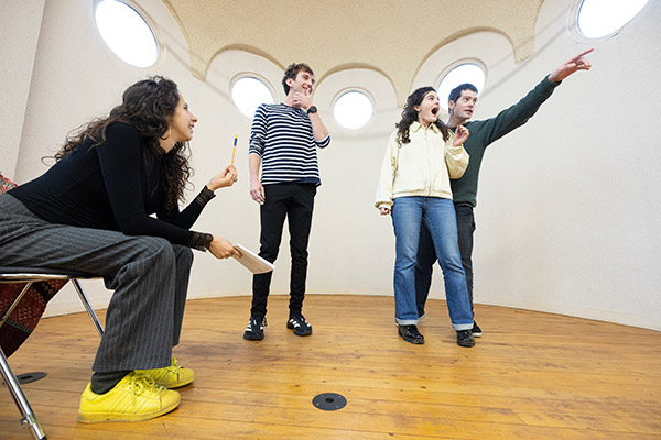 On l'appelle la coupole : une grande salle au dernier étage du Grand-Théâtre, place du Ralliement à Angers. Ici, pas de régie ou équipements techniques, juste un vaste espace dépouillé, une table et quelques chaises. "Nous sommes en fin d'écriture de notre nouvelle création, 'L'Iliade, la grande traversée'", explique Pierre Berthé de la compagnie Figura Théâtre. Créée en 2022 par quatre anciens élèves du conservatoire d'Angers, la troupe n'en est pas à sa première création : "Cette année nous avons joué notre première pièce, Méta, sur la scène du théâtre du Champ-de-Bataille, indique Grégoire Le Stradic. Pour la préparer nous avions été accueillis en résidence salle Chabrol à Angers, et aussi au Plessis-Macé."