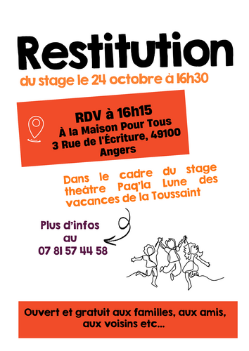 Ne manquez pas la restitution du stage de théâtre, le vendredi 24 à 16h30 !