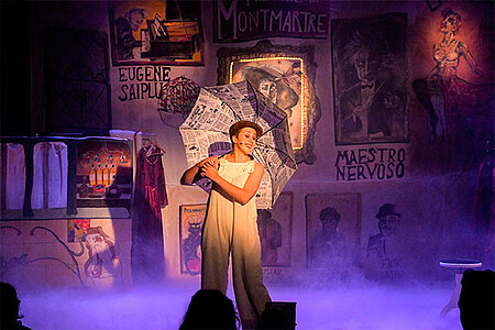Montmartre, la Belle Époque. Une ouvreuse de théâtre doit faire patienter le public dans l'attente de la célèbre diva : La Grande Bartholomée. En empruntant divers accessoires, Pierrette va se fondre dans les peaux de plusieurs vedettes habituées des lieux. Un violoniste peureux, une danseuse de cancan extravertie, un Érik Satie alcoolisé... ce voyage comique, poétique et musical est à destination de petits et grands. Il interroge notre rapport aux idoles, au narcissisme, et au sentiment d'imposture.