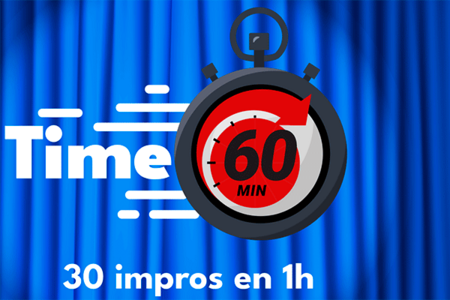 Un défi est imposé aux comédiens et comédiennes : improviser 30 pièces de théâtre en 60 minutes. Ils ont 1 heure, et pas une minute de plus, pour réaliser 30 improvisations, et pas une de moins ! Un suspense auquel vous participerez ! Les impros varieront de 5 secondes à 15 minutes.