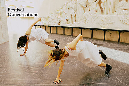 Personnages masculins mythiques, inscrits dans des mises en scène historique, scrutant les visiteurs. C’est sous leurs regards francs, gestes élancés et postures dominatrices que deux Nymphes s’étonnent de n’apercevoir aucune femme en leur compagnie. Elles cherchent alors à trouver leur place, inscrire un geste, affirmer leur position de muses, déesses et odalisques. Elles s’imposent comme artistes du mouvement et sculptent leur place sur l’unique stèle laissée à l’abandon sous les gouttes de pluie.