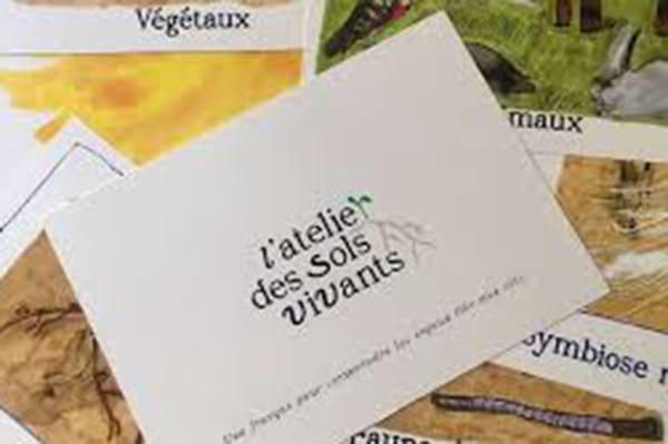 L'atelier des sols vivants est un outil ludique basé sur l'intelligence collective qui vise à diffuser un langage commun sur le fonctionnement des sols et sur les enjeux liés à leur préservation. Au travers de 48 cartes et en deux heures et demie, cet atelier accessible à tout public permet d'étoffer sa connaissance du sol, de comprendre l'impact de l'activité agricole sur celui-ci et d'ouvrir une discussion fertile sur les actions à mener pour engager la société vers une meilleure gestion de cette ressource finie.