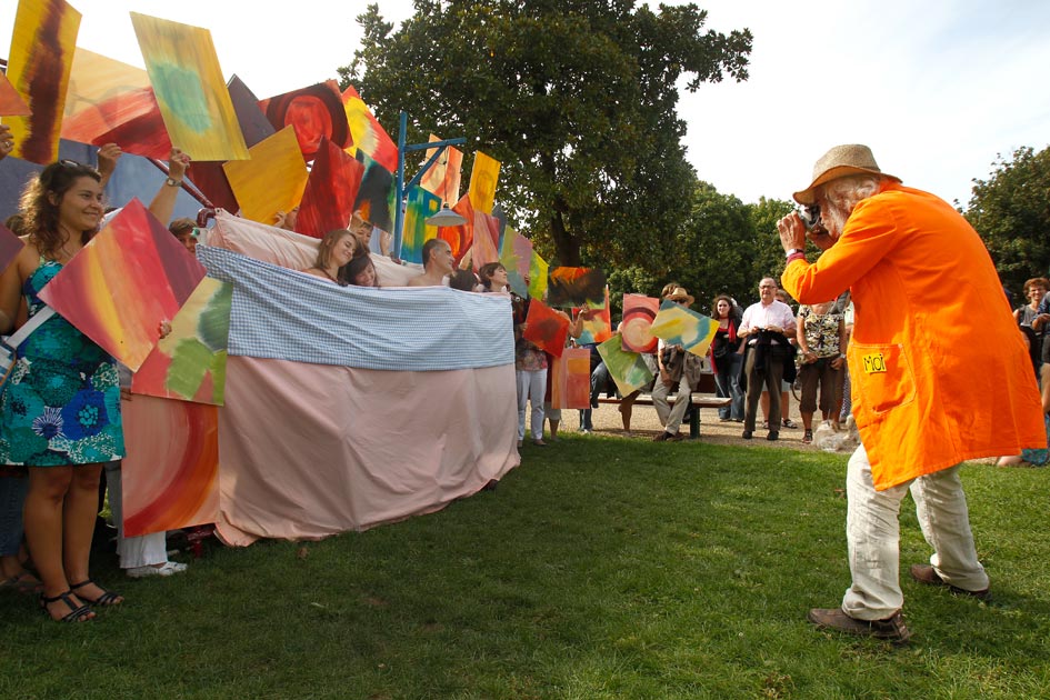 Port Ligny, les Cubiténistes présentaient le "musée de la vie quotidienne". Ou comment transformer le public en oeuvre d'art. (Photo: Thierry Bonnet/Ville d'Angers)