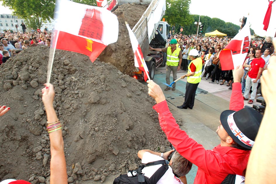 ... avec Jean-Claude Antonini à la manoeuvre pour apporter sa terre à l'édifice. (Photo: Thierry Bonnet/Ville d'Angers)