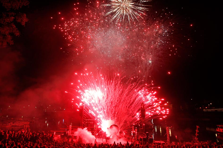 Rythme endiablé et pyrotechnie: les Commandos percu ont enflammé la cale de la Savatte. (Photo: Thierry Bonnet/Ville d'Angers)