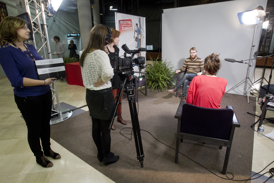 FOCUS: l'actualité du Festival en vidéo. Trente quatre étudiants en journalisme audiovisuel de l'ISCEA (Institut des Sciences de la Communication et de l'Education d'Angers) assistés de journalistes professionnels, débattent, tournent et montent des sujets dans le vif du Festival. (Photo: Thierry BONNET/Ville d'Angers)