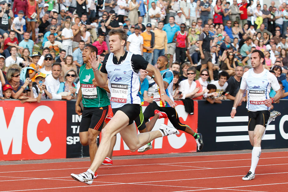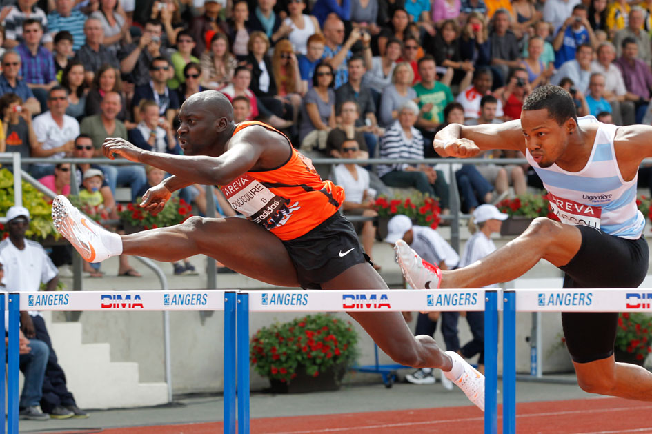 Ladji Doucouré, dont le record établi à Angers en 2005 tient toujours, n'a pas démérité en terminant deuxième en 13"56, à égalité avec Samuel Coco-Viloin. (Photo: Thierry Bonnet/Ville d'Angers)