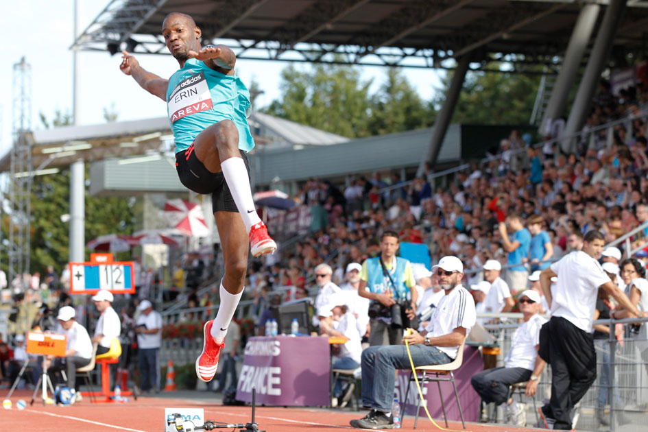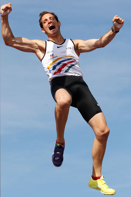 En saut en longueur, Frédéric Erin, qu'on n'attendait pas à pareille fête, s'empare du titre avec un saut à 8m01. (Photo: Thierry Bonnet/Ville d'Angers)