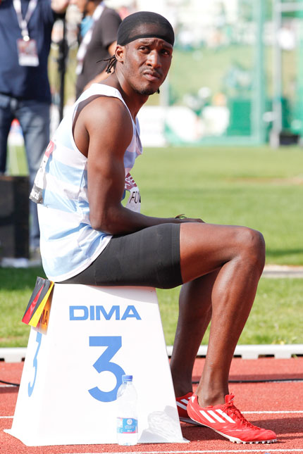 Yannick Fonsat concentré avant le départ du 400m, dernière épreuve de ces championnats de France. Il gagnera l'or, en 45"39, mais échouera de 29 centièmes à décrocher son billet pour Londres. (Photo: Thierry Bonnet/Ville d'Angers)