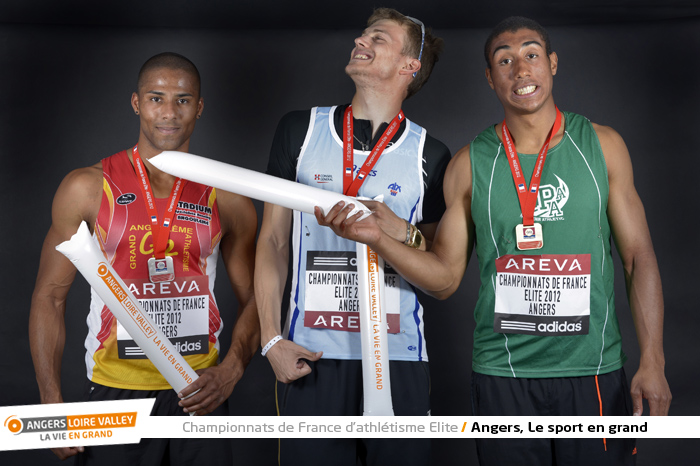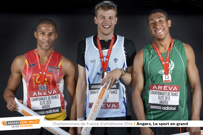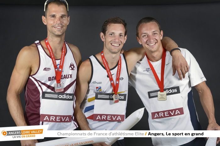 Renaud Lavillenie (or), Romain Mesnil (argent), Alexandre Feger (bronze), saut à la perche (photo Antonio Bozzardi / Ville d'Angers)