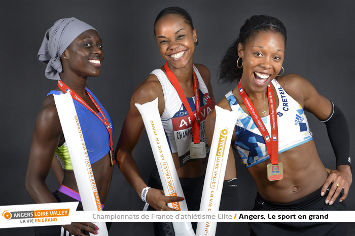 Phara Anacharsis (or), Aurlie Chaboudez (argent), Cécile Bernaleau (bronze), 400 m haies Femme (photo Antonio Bozzardi/ Ville d'Angers)