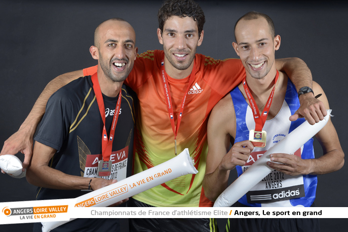 Mahie Mekhissi Benabbad (or), Nour-eddine Gezzar (argent), Nouredine Smail (bronze), 3000 m steeple Homme (photo Antonio Bozzardi / Ville d'Angers)