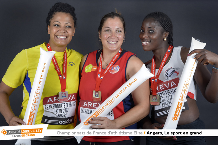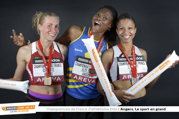 Françoise M Bango Etone (or), Nathalie Marie-Nely (argent), Teresa Nzola Meso Ba (bronze), Triple saut (photo Antonio Bozzardi / Ville d'Angers)