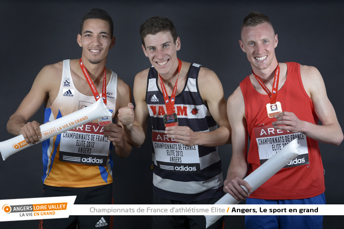 Pierre-Ambroise Bosse (or), Hamid Oualich (argent), Brice Leroy (bronze), 800 m Homme (photo Antonio Bozzardi / Ville d'Angers)