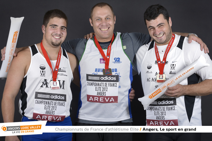 Nicolas Figere (or), Quentin Bigot (argent), Jerome Bortoluzzi (bronze), Lancer du marteau Homme (photo Antonio Bozzardi / Ville d'Angers)