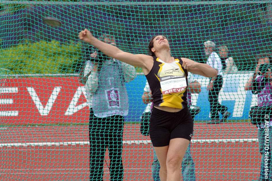Première médaille de la journée: l'or, au disque, pour Mélina Robert-Michon... (Photo: Sébastien Aubinaud)