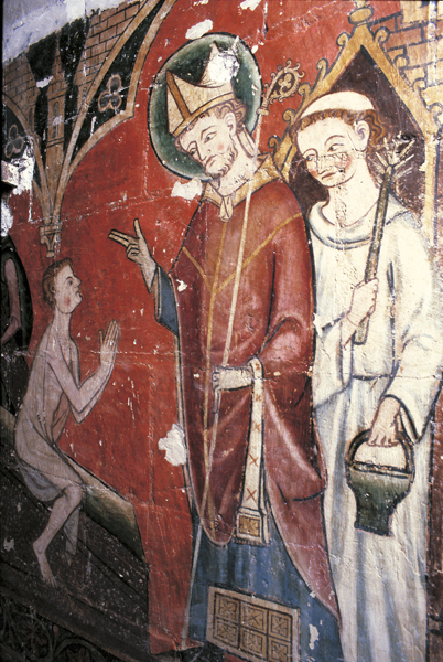 Les murs et les voûtes de Saint- Maurice étaient, à l’époque médiévale, entièrement couverts d’un décor intérieur peint. Badigeonnés à l’époque classique, ils furent dans la seconde moitié du XIXe siècle en grande partie décapés. Cependant, en 1980, derrière les boiseries du choeur, un cycle peint épargné fut découvert. Il se compose de scènes encadrées par des architectures peintes, sur des fonds alternativement rouges et verts, narrant l’histoire de saint Maurille, évêque d’Angers, ordonné prêtre par saint Martin. Ce cycle est l’un des plus importants connus en France pour la seconde moitié du XIIIe siècle. Les boiseries ne permettent pas actuellement de montrer ces peintures.
