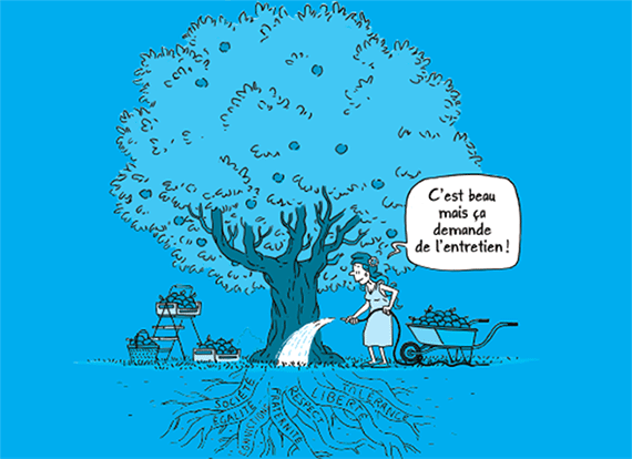 L’exposition-quiz "La Laïcité, parlons-en" s’appuie sur une iconographie forte de 8 dessins de presse originaux et de 15 questions à choix multiples qui balayent les principaux thèmes liés :