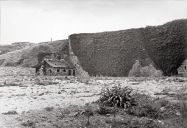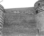 | Elévation partielle des remparts (tour dépassant la courtine), dessin, par H. Enguehard, 1953. |