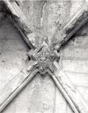 | Le logis royal, élévation sud, rez-de-chaussée, petite pièce non identifiée, dans l'épaisseur du mur : clé de la voûte d'ogives. |