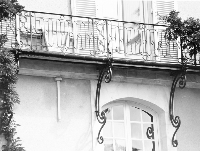 | Angers, Centre-ville (quartier), Préfecture (mail de la), Abbaye de bénédictins puis de mauristes, dite abbaye Saint-Aubin, actuellement hôtel du Département et préfecture de Maine-et-Loire | Aile sud de l'abbaye, élévation sud, sur le jardin : détail sur le balcon du premier étage. |