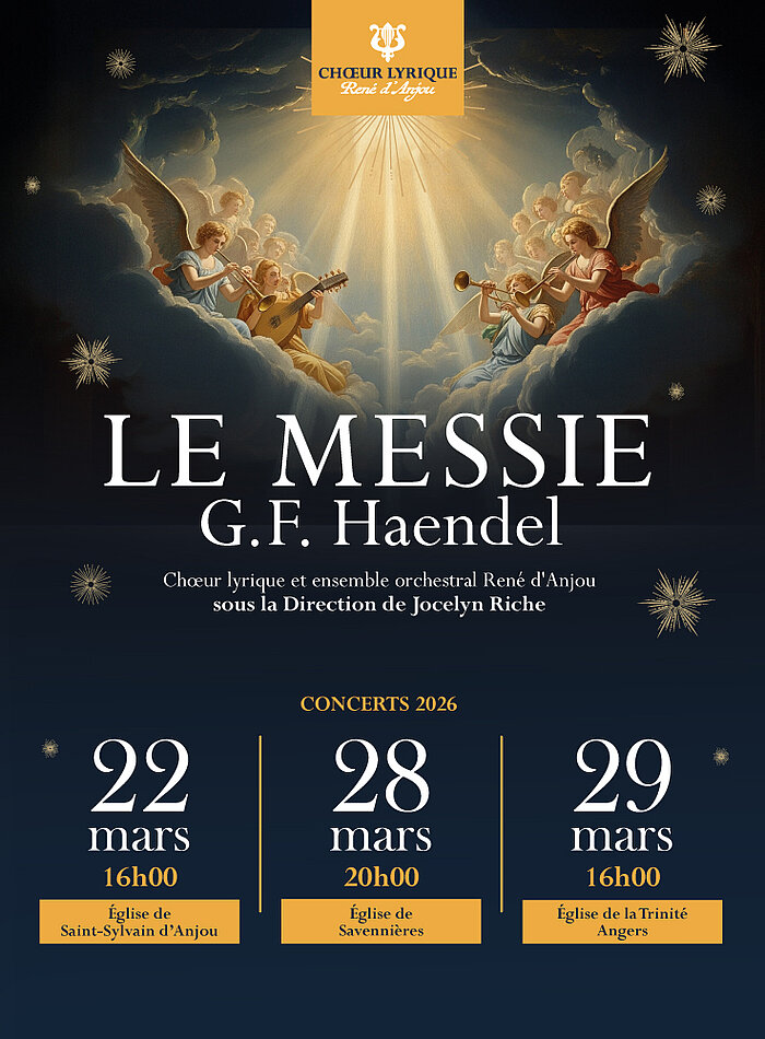 Le Chœur Lyrique René d'Anjou interprète le Messie de Haendel avec un ensemble instrumental professionnel et solistes issus du chœur.
