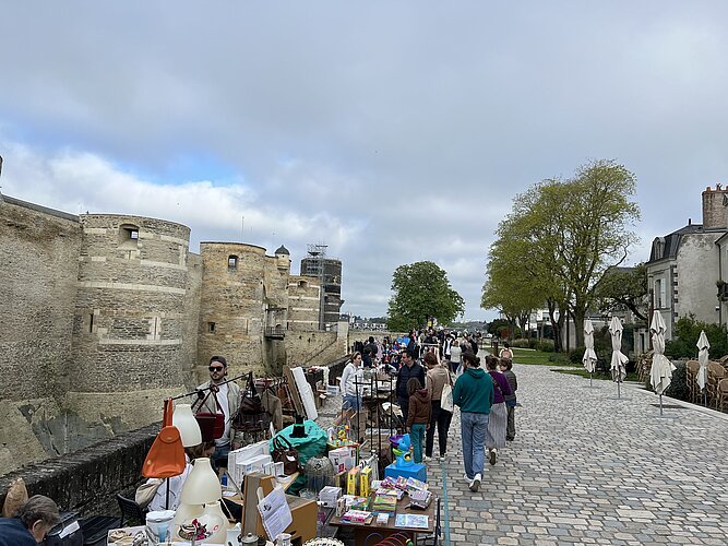 Troisième édition du vide-greniers des Amis de la Cité sur la promenade du Bout du monde face au château.