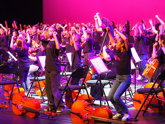 Initié en 2010 par la Philharmonie de Paris, Démos est un projet de démocratisation culturelle centré sur la pratique musicale en orchestre. Il propose un apprentissage de la musique à des enfants ne disposant pas, pour des raisons économiques, sociales et culturelles, d’un accès facile à cette pratique.