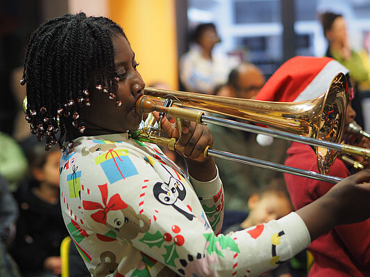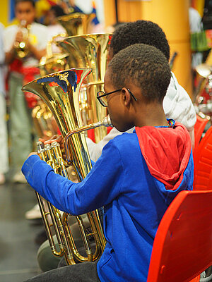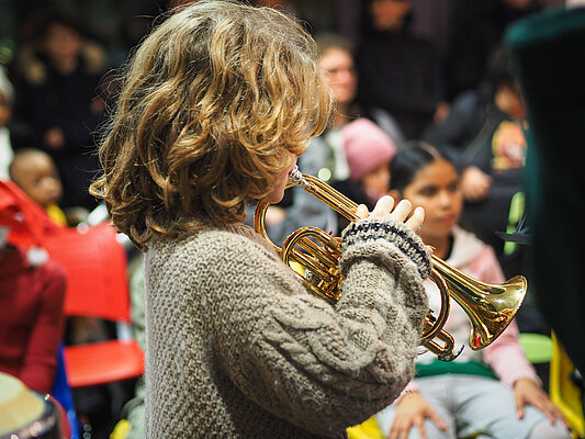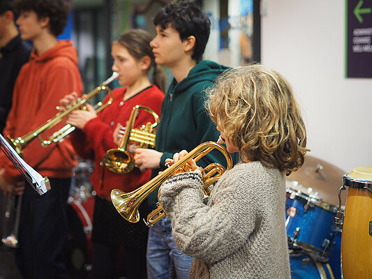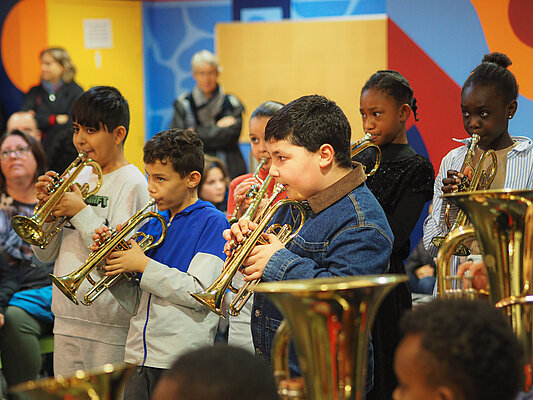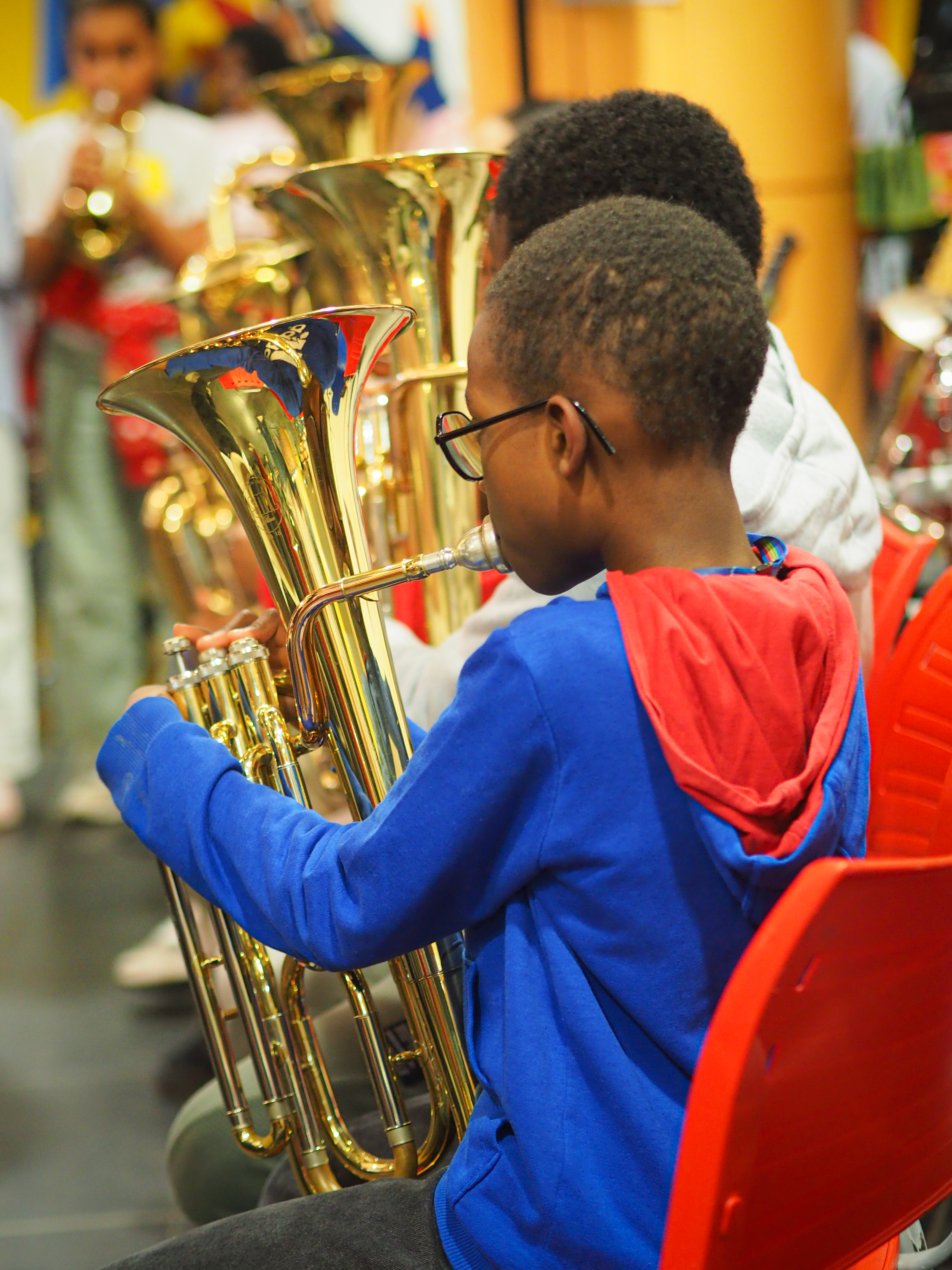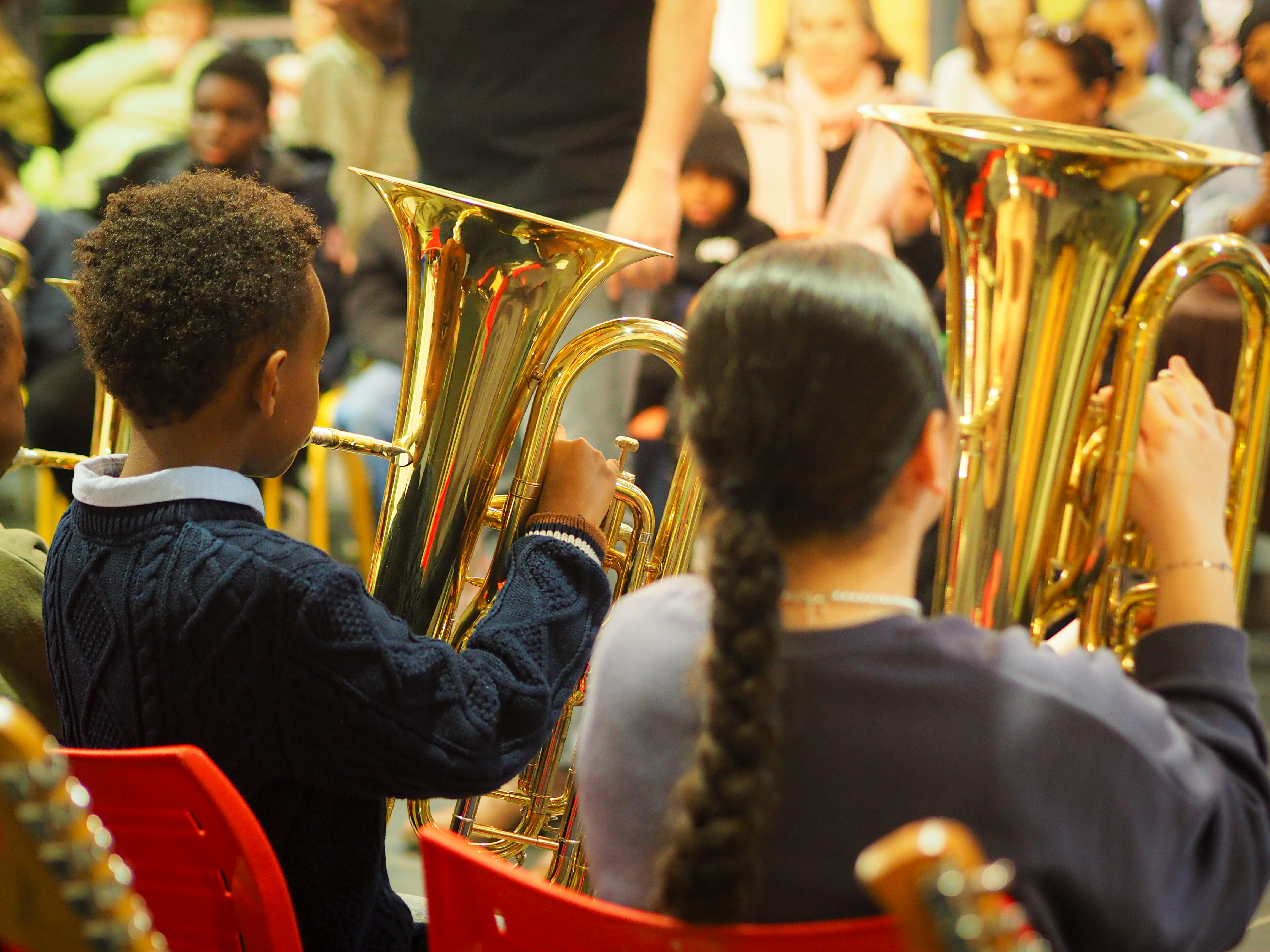 Le samedi 18 octobre, toute la journée, le nouvel Orchestre Démos a célébré au Conservatoire sa journée de rentrée, dans une ambiance chaleureuse et festive. Les enfants de l’orchestre et les leurs familles ont été invités à vivre une journée de découverte musicale et de partage. Le matin, petits et grands ont pu rencontrer l’équipe artistique et sociale qui accompagnera les enfants pendant les 3 ans du dispositif, explorer les instruments qu’ils pratiqueront, et voyager à travers les musiques du monde avec deux intervenants de la Galerie Sonore.