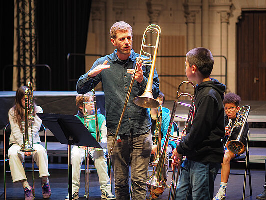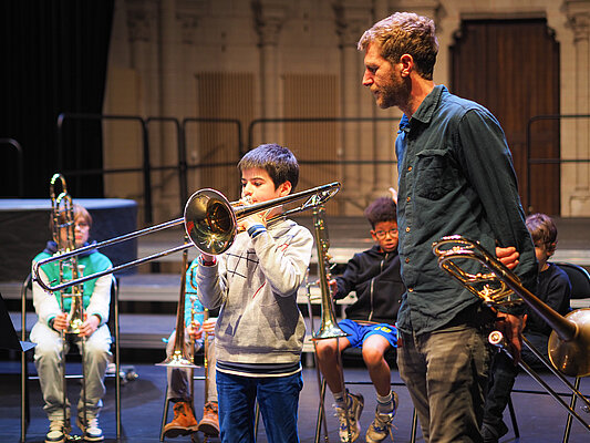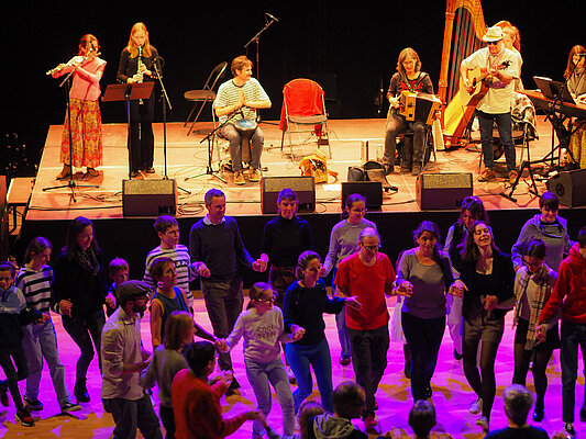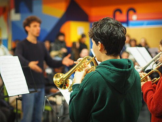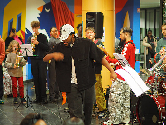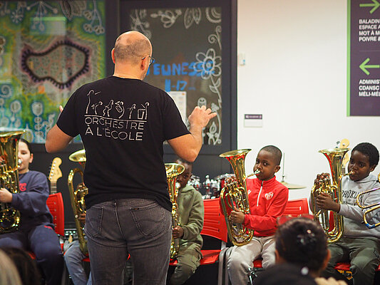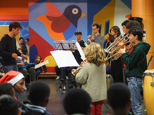 Un grand pique-nique convivial a réuni tout le monde dans la cour du Conservatoire, avant une après-midi immersive dirigée par le chef d’orchestre Tanguy Bouvet. Musiciens, danseuses, enfants, parents et référents des maisons de quartier partenaires ont collaboré autour de la "Marche royale du lion", extrait du Carnaval des animaux de Camille Saint-Saëns, pour créer une forme originale mêlant orchestre, percussions corporelles, chant et danse. Une belle entrée en matière pour cette aventure artistique et humaine qui se poursuivra jusqu’en juin 2028 !
