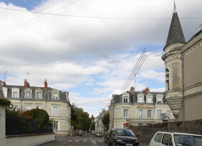 Croisement des rues Racine (dans l’axe) et Mirabeau. ©Inventaire général, Dominique Letellier, ADAGP/Ville d’Angers, Olivier Biguet, 2000