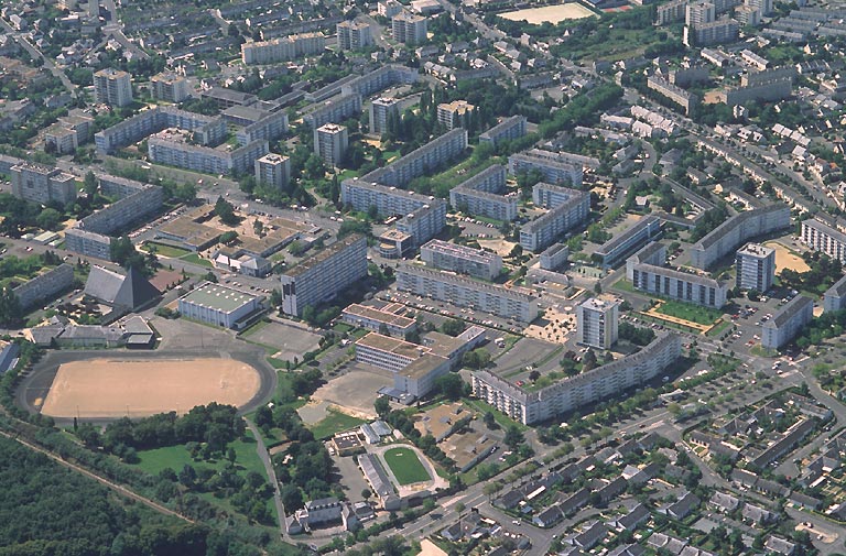 Vue aérienne du quartier de Monplaisir, depuis le nord. ©Ville d’Angers, photo Serge Simon, 2001