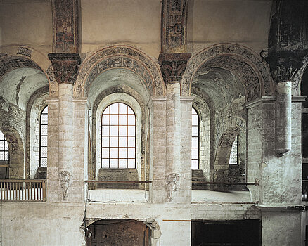 Les remaniements importants du XVIIe siècle ont transformé l’édifice roman : pour permettre l’installation de stalles dans la nef, les arcades sont fermées à mi-hauteur par des murs et les colonnes engagées de la nef tronquées dans leurs parties inférieures. A cette époque, le sol est surélevé de 1,20 m et des tribunes sont aménagées dans les collatéraux créant ainsi un second niveau. Le maître-autel, qui sépare aujourd’hui la nef du transept, est une oeuvre du XVIIIe siècle provenant du choeur et déplacé à cet endroit en 1816.