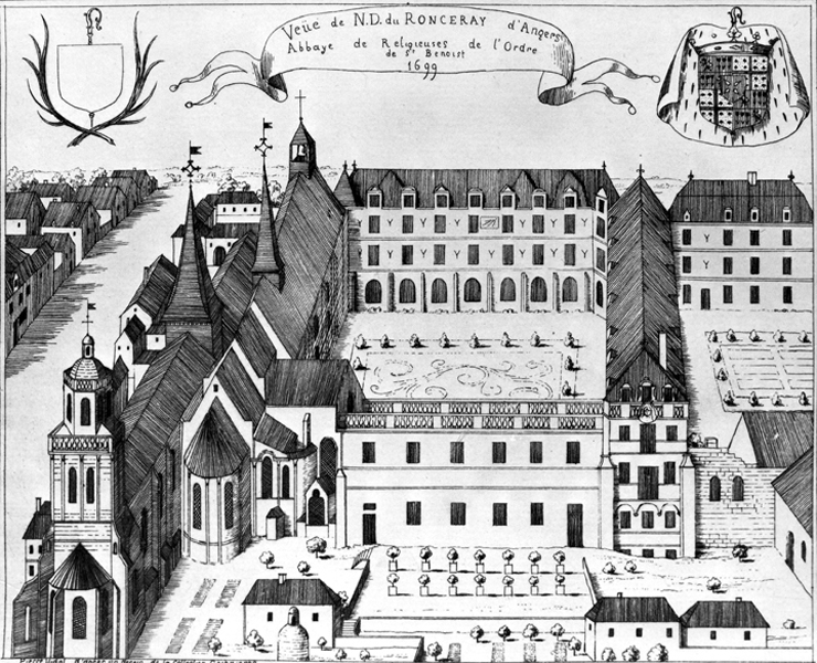 Au coeur du quartier de la Doutre (outre-Maine), l’abbaye du Ronceray était la seule abbaye de femmes sur les cinq que comptait la ville. Son église abbatiale est une oeuvre majeure du début de l’art roman. Elle constitue, avec l’église paroissiale de la Trinité qui lui est accolée peu après, un ensemble remarquable des XIe et XIIe siècles.