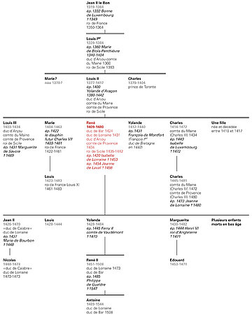 Voilà le souvenir de René installé en Provence et en Anjou. C’est là que va se développer la légende du « bon » roi René, déjà sous la plume du chroniqueur angevin Jean de Bourdigné qui en 1529 dresse le portrait édifiant d’un protecteur du pays et de l’Église, défenseur du peuple et amoureux de la paix. Depuis lors, le tableau n’a cessé d’être remodelé par les auteurs, au gré de leur inspiration et des enjeux de leur époque. Le roi René ne doit pas cette survie à ses rares succès politiques ou militaires ; il est d’ailleurs plutôt d’usage de souligner la faible intelligence de ce prince en cette matière - ainsi Shakespeare raille-t-il (dans son Henry VI) ce roi « miséreux, sans sujets, sans fortune et sans couronne ». Il ne la doit pas non plus à son œuvre littéraire, dont certains ont dénoncé la banalité voire la médiocrité. La légende tient peut-être au personnage, sans doute à son mécénat fastueux et à sa réputation - à réviser - de précurseur de la Renaissance, mais aussi à une dimension mémorielle dans ses anciens territoires qui, avec sa mort, perdirent leur statut de principautés, l’Anjou dès 1480 et la Provence l’année suivante.