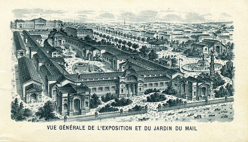 Exposition universelle à l’échelle locale, l’exposition nationale d’Angers se tient sur l’actuelle place du Général-Leclerc de mai à octobre 1895. Dans des pavillons éphémères, elle présente les produits de l’industrie, de l’agriculture et de l’horticulture, mais aussi des travaux scolaires ou des œuvres des beaux-arts. Les attractions, fêtes, concerts, concours ou conférences attirent de nombreux visiteurs et animent la ville.