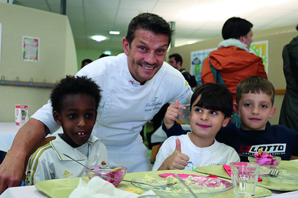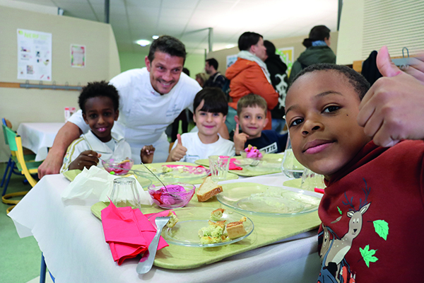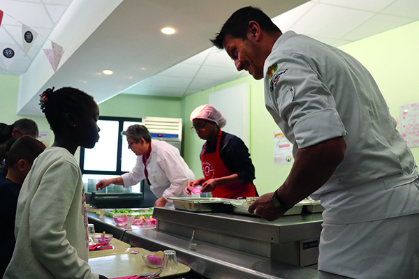 Imaginez un même menu, conçu à partir de produits locaux et de saison par un grand chef, servi le même jour sur tout un territoire par les acteurs de la restauration collective et traditionnelle. C’est tout l’objet du « Grand repas », qui se déroulait partout en France ce jeudi 9 octobre. Pour cette 5ème édition, c’est Regis Legain, chef du restaurant le Bosquet, qui relevait le défi de réaliser ce menu spécial sur notre territoire. Une chouette proposition culinaire imaginée en lien étroit avec Papillote et compagnie depuis le printemps dernier. Après de premiers échanges autour du menu en mars, quelques ajustements ont permis d'élaborer les plats dégustés avant l’été par les professionnels mais aussi par les « Petits testeurs » de Papillote et compagnie qui ont validé à 100% la proposition. De quoi permettre la déclinaison du menu ce 9 octobre dans les 14 500 assiettes des enfants déjeunant dans les restaurants scolaires sur Angers et les communes alentour.