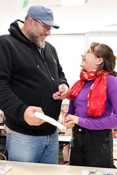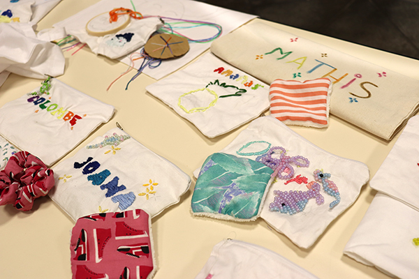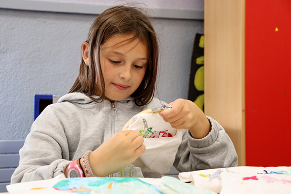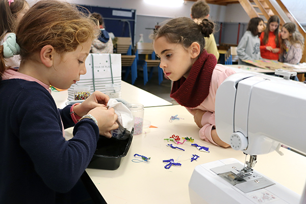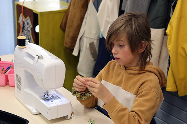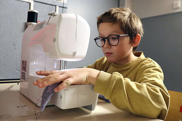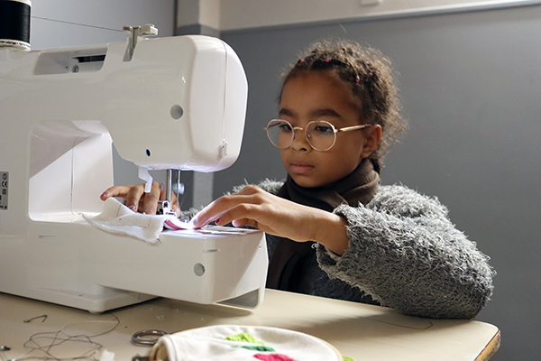 Mme Dufun et Mme Dufil – alias Marion et Romane, les deux animatrices du stage - ont ouvert leur atelier de couture du 20 au 24 octobre à l’accueil de loisirs de la Blancheraie à plus d’une vingtaine de jeunes couturiers en apprentissage. Novice en la matière ou expert des activités manuelles, nos apprentis s’en sont donnés à cœur joie pour apprendre les rudiments de la couture, de la broderie ou du tressage au fur et à mesure de la semaine. « Nous avons débuté la semaine en apprenant les techniques de base et ainsi permettre à chacun de réaliser ses œuvres en autonomie par la suite », précisent nos deux animatrices référentes. A la main ou à la machine, en couture ou en broderie, chacun a ainsi pu faire parler son côté créatif pour réaliser ou customiser chouchous, pochettes, tote-bag ou autres lingettes… « Avec toujours beaucoup d’entraide et de solidarité dans le groupe où les plus à l’aise se montraient toujours disponibles pour filer un coup de main aux copains quand cela était nécessaire ». Côté tressage et perles, la réalisation d’animaux, de bracelets brésiliens ou de scoubidous était également au programme avec la encore, de l’imagination à revendre dans le choix des couleurs et des formes. Une créativité encouragée par la sortie très appréciée du mercredi au musée Jean Lurçat où les enfants ont pu découvrir la célèbre tapisserie du « Chant du Monde » mais également se régaler devant les œuvres du concours international de mini-textiles. Mais ce jeudi 23 octobre, ce sont bien leurs créations à eux qui faisaient l’objet de toutes les attentions lors d’un goûter convivial ouvert aux parents en fin de journée. Avec de très beaux effets « whaouh » à l’heure des présentations et une fierté partagée qui pouvait se lire sur les visages des petits comme des grands. De belles complicités familiales qui se poursuivaient même par la possibilité pour les adultes de s’essayer à la machine ou au tressage aux côtés de leurs enfants. De très chouettes échanges de savoir-faire qui pourraient bien se prolonger dans les prochaines semaines à la maison. De quoi reprendre le fil de l’histoire.