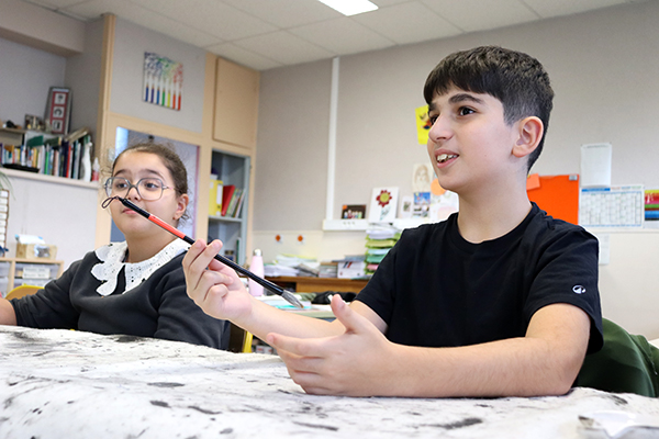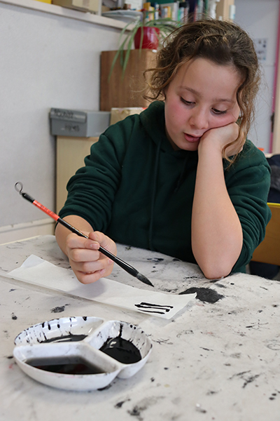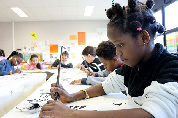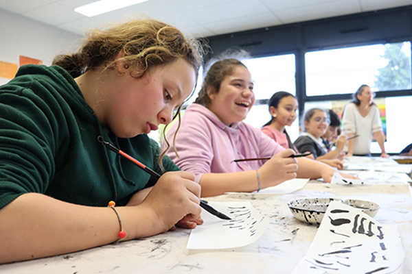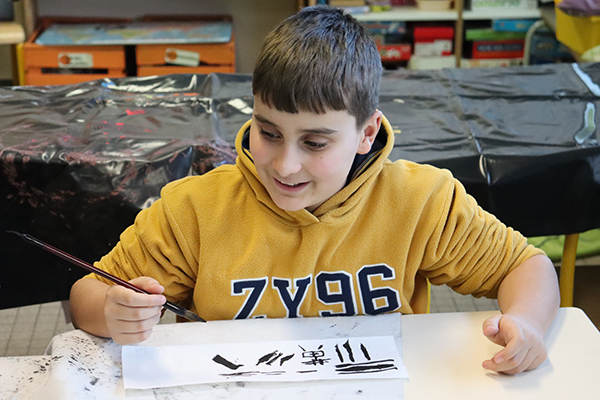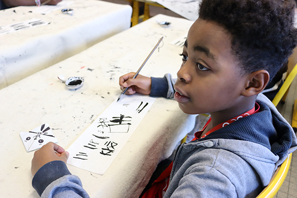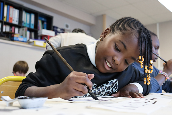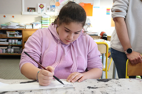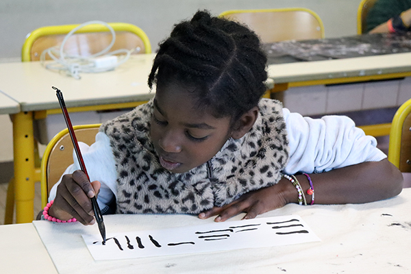 L’excitation était à son comble ce vendredi 21 novembre à l’école Paul Valéry pour tous les enfants participant au TAP « découverte de la culture chinoise ». Et pour cause. Après plusieurs séances permettant d’explorer la cuisine traditionnelle, la fabrication de masque de l’opéra de Pékin, l’art de l’origami ou encore de pratiquer des jeux de société emblématiques… la séquence du jour faisait la part belle à la calligraphie. Sous la conduite de Quan Han, professeur de l’Institut Confucius, les enfants ont pu mesurer toute l’importance de cet art ancestral et en découvrir les subtilités avant de s’exercer, pinceaux en main, à réaliser quelques traits essentiels.