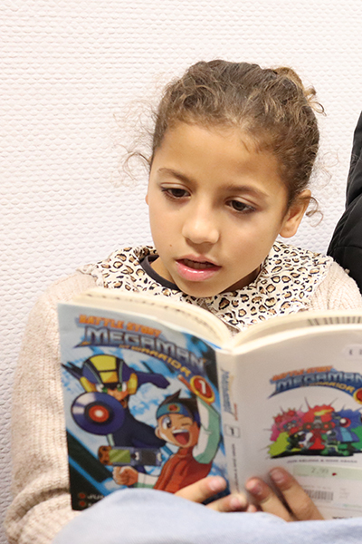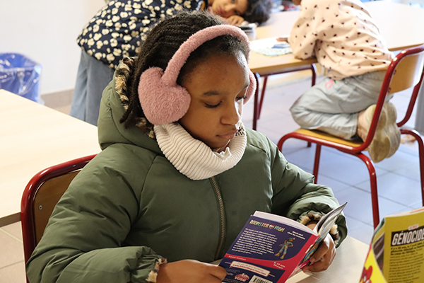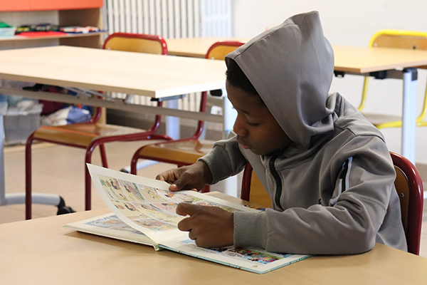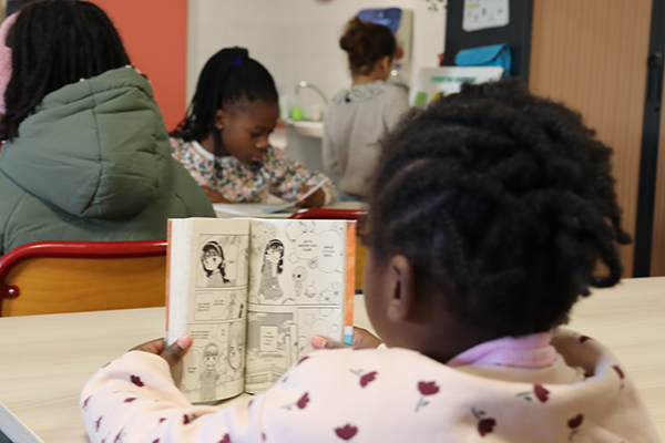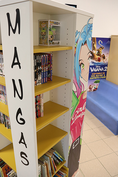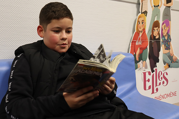 Quelques affiches cartonnées en PLV, des figurines déposées ci-et-là, une tour de livres joliment décorée… les différents héros de mangas s’affichent haut et fort sur de nombreux supports et donnent le ton de la bibliothèque mobile déployée depuis dernier sur l’école François Raspail. Un nouvel outil pédagogique déployé sur les temps périscolaires qui permet aux enfants qui le désirent de s’offrir un temps de lecture plaisir. Au total, la collection regroupe près de 150 ouvrages neufs ou de seconde main, dont une centaine de mangas tels que « Spy X Family", "My héro academia", ou encore "En scène", "pour faciliter l'entrée dans la lecture des enfants via des médias qu'ils maitrisent mieux", souligne Jordan Rezeau, apprenti BPJEPS qui a mené à bien ce projet durant sa formation. Un fonds enrichi de quelques romans, magazines et autres bandes dessinées empruntés au PELJ, Ouvre une nouvelle fenêtre (Pole éducatif livres et jeux) pour le plus grand plaisir des jeunes lecteurs qui peuvent être jusqu’à une vingtaine en simultané à profiter de cette pause-lecture avant ou après le déjeuner. Assis sur des chaises autour des tables, allongé sur des coussins géants ou confortablement posé sur des banquettes moelleuses, chacun s’installe à sa guise pour ce moment ou règnent calme et sérénité. « Si un animateur reste présent, les enfants sont très autonomes sur le temps lecture et respectueux des règles comme de ne prendre qu’un ouvrage à la fois ou encore de veiller à n’emprunter que les mangas correspondant à leur tranche d’âge selon le code couleur mis en place », souligne Jordan.