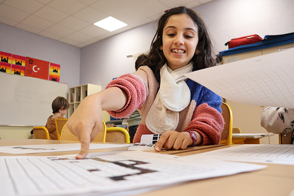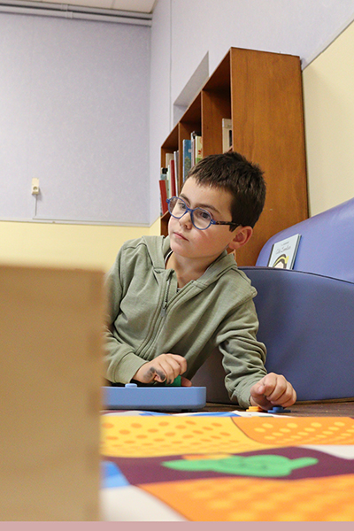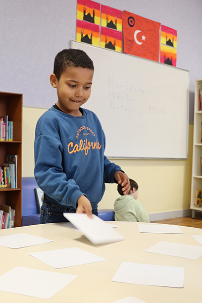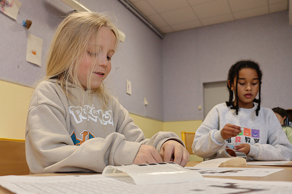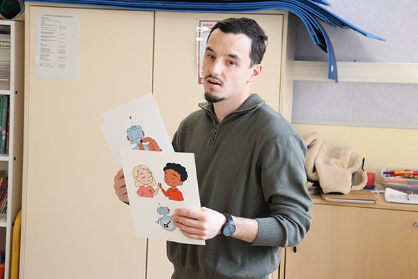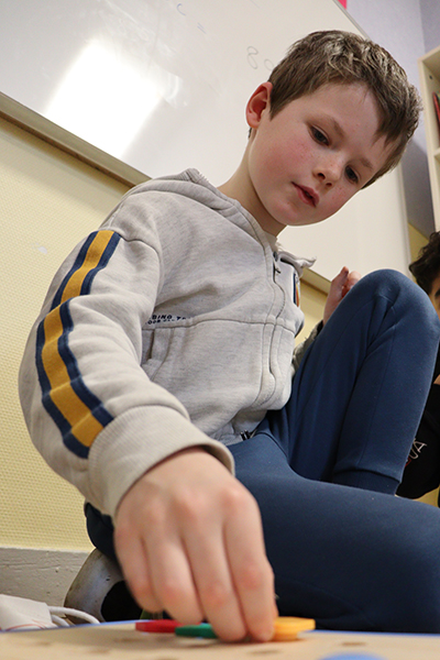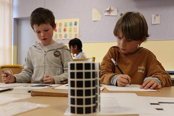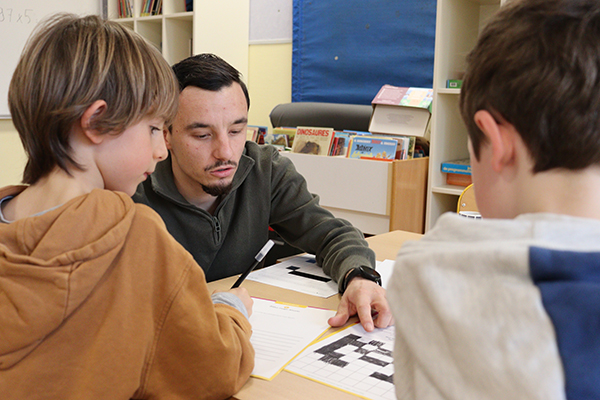 Plutôt adepte des activités sportives, Pierre Cerclé, animateur périscolaire sur l’école René Gasnier a décidé de mettre en place un TAP dédié au numérique pour ce début d’année 2026. « J’ai suivi une formation spécifique au numérique à l’automne 2025 – comme une dizaine d’autres animateurs sur la Ville d’Angers - et j’avais hâte de mettre en pratique ces acquis auprès des enfants », explique-t-il avec envie. Un enthousiasme partagé chaque lundi par la quinzaine d’enfants de CP et de CE1 qui ont choisi de suivre cet atelier TAP entre janvier et avril. Il faut dire que la méthode proposée a de quoi séduire. « L’idée du TAP, basé sur la méthode Colori, est d’initier les enfants à la technologie ou au code autour d’ateliers ludiques et pratiques en petits groupes ». Aussi, ce lundi 26 janvier, pas moins de 4 pôles d’activités étaient mis en place dans la salle d’activité, au choix des enfants. « J’invite chacun à suivre les 4 activités mais je ne force personne », souligne Pierre. « L’envie d’apprendre est une clé de la réussite du projet ». Et les apprentissages sont réels. Sur le premier pôle par exemple, la réalisation de dessins sur un quadrillage avec des nombres binaires permet de mieux comprendre ce qu’est un pixel et les premières logiques de programmation. Sur le second, ce sont même les enfants qui créent leur propre programmation en recouvrant le quadrillage de nombres binaires. Excellent ! Sur la table plus loin, un Mémory de la technologie invite à s’imprégner du vocabulaire. En, effet, à chaque binôme de cartes retrouvé correspond une définition : algorithme, drone, androïde, pixel, robot… Un vrai voyage au cœur de la technologie sans s’en rendre compte. Pour la quatrième activité, il s’agissait même de programmer sur une table de commande le déplacement d’un robot, baptisé « Cubéto » vers une destination précise en veillant à éviter les pièges. Un exercice ludique fort apprécié de nos jeunes participants, déjà habiles dans ces manœuvres alors qu’ils débutent tout juste leur cycle 2. « Les activités sont adaptées à ces tranches d’âge. Il m’arrive même de les proposer aux grandes sections également », souligne Pierre, très investi dans cette nouvelle activité qui propose une vraie montée en compétence au fur et à mesure des séances, sans forcément que les enfants aient l’impression d’apprendre. « On devrait bientôt ouvrir le robot par exemple pour voir ce qui le compose et mieux comprendre son fonctionnement ». Un cycle d’apprentissage garanti 100% sans écran qui permet de mieux appréhender le numérique et de porter sur la technologie un regard plus éclairé.