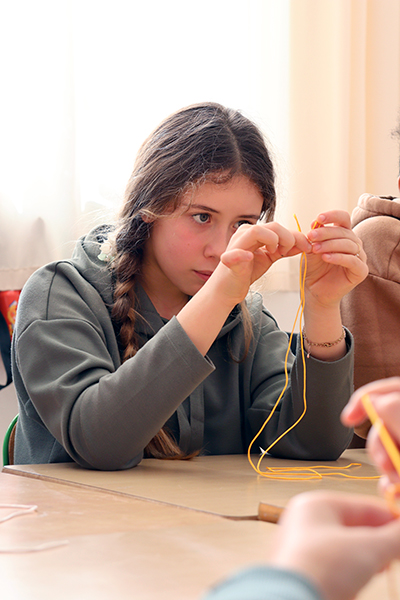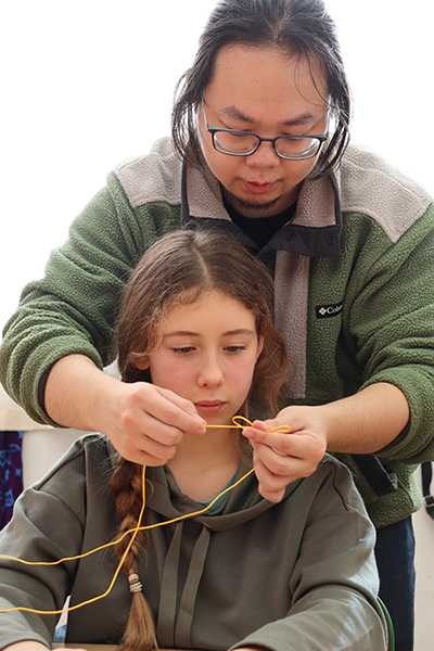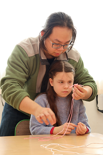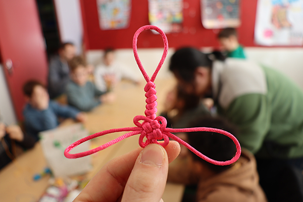L’attention était à son maximum ce mardi 24 février à l’accueil de loisirs du Hutreau pour la dizaine d’enfants inscrits au stage « L’aventure du zodiaque chinois ». Il faut dire que la réalisation de nœuds chinois mobilise beaucoup de concentration afin de maitriser cet art ancestral consistant à tresser et à nouer une seule longueur de corde pour former des motifs symétriques et complexes. Sur les conseils avisés de Quan Han, professeur de l’Institut Confucius, chacun s’attelait ainsi à la tâche avec patience, persévérance et entraide. Un atelier fort apprécié au cours de cette folle semaine dédiée à la Chine, à sa culture et à ses traditions, qui a permis aux enfants d’ajouter deux tampons représentant les signes astrologiques chinois à leur collection. « L’objectif de la semaine est de reconstituer l’ensemble du zodiaque chinois en participant aux différentes activités », explique Théo, l’animateur référent du stage. « Ils en avaient déjà récupéré hier lors de l’atelier calligraphie, conduit, la aussi, avec l’Institut Confucius », poursuit Théo, admiratif des idéogrammes réalisés par les enfants. Un début de semaine immersif qui s’est poursuivi au fil des 5 jours autour d‘ateliers cuisine – avec soupe chinoise et ravioles vapeur au menu -, de séances de taijiquan, de fabrication de lanternes colorées en papier ou encore, de confection de jeux de cartes traditionnel « Hanafuba ». De quoi fêter dignement les 20 ans du partenariat entre Angers et Yantaï et de célébrer l’entrée dans l’année du cheval !