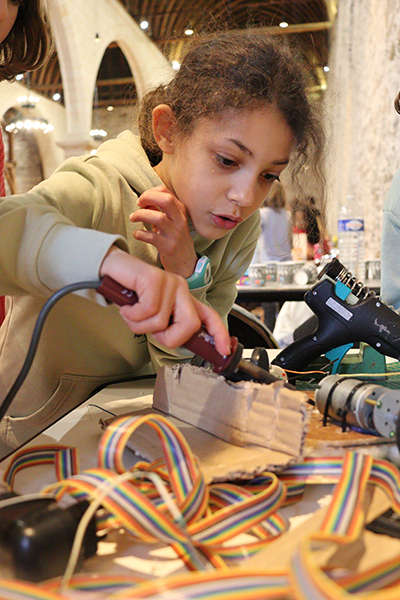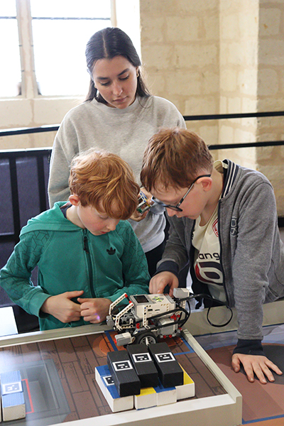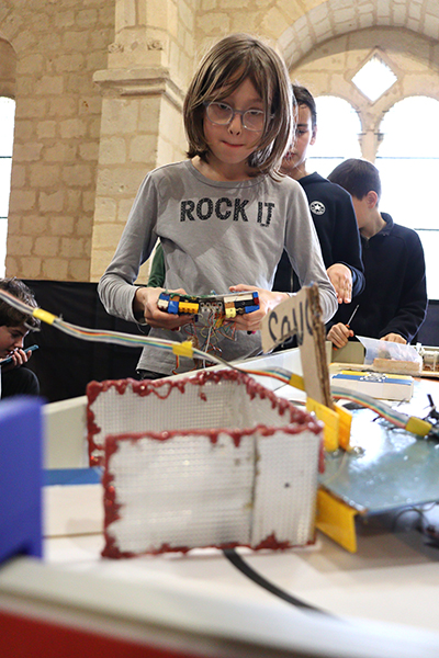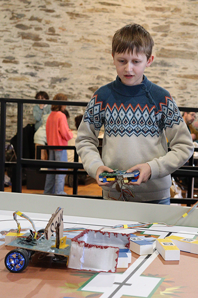« Le robordillon des neiges », « Le lutin farceur », « Le grinch D’acier », « Ecui-glace », « Le Robot-cadeau » ou encore « Maxi-noisette »… Entre jeux de mots en référence à leur école ou allusion claire au thème de l’édition 2026 « Winter is coming », les noms des différents robots construits par les écoles publiques angevines* pour la prochaine Coupe de France de robotique junior ne laissent pas… de glace. Bien plus qu’un détail, le choix du nom est l’aboutissement de plusieurs mois passés à construire le robot filoguidé qui concourra au parc des expositions le samedi 28 mars. Il faut dire que les enfants, du CP au CM2, ont consacré quelques heures, sur les temps d’activités périscolaires ou lors de la pause du midi, à mettre au point leur machine aux cotés d’un animateur des Francas ou de Terre des Sciences. Des temps ludiques et pédagogiques qui leur ont permis de découvrir les différents domaines de la robotique : mécanique, électricité, informatique, programmation et électronique. Des initiations bien suivies quand on constate toutes les tâches réalisables par les différents robots se succédant sur la table de match ce mercredi 11 mars : avancer, reculer, attraper, pousser, ramasser… Toutes les fonctionnalités sont testées une à une et les derniers réglages s’opèrent en coulisses à grand renfort de fer à souder. L’occasion aussi de finaliser le design du robot, en apportant les ultimes coups de pinceau ou de pistocolle. Une répétition générale avant la compétition attendue le samedi 28 mars prochain entre 10h et 18h, où 47 équipes vont tenter de se qualifier pour la finale nationale au cours de matchs de 90 secondes, lors desquels plusieurs actions, de niveaux de difficulté différents, seront à réaliser par les robots. A raison de 3 matchs par équipe – davantage si le robot parvient à rallier les demi-finales et finales -, le spectacle s’annonce exceptionnel sur scène, en tribunes mais aussi dans les allées où de nombreuses animations tout public autour de la robotique et des sciences seront proposées. Un événement festif, à l’entrée libre et gratuite, qui se clôturera par la remise des prix coup de cœur, du projet, de l’innovation et du fair-play !