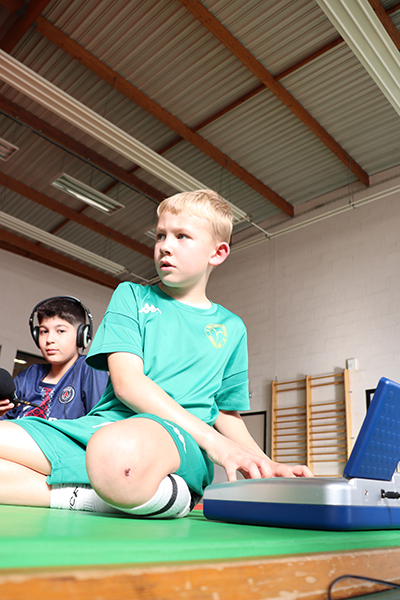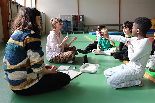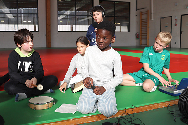 Autre école, autre ambiance ! Le CLEA se déclinait aussi sur les temps d’activités périscolaires à la Blancheraie. Aux côtés du percussionniste Charles Dubois, et de Mélinda Hamon, animatrice sur l’école, les enfants ont expérimenté l’enregistrement de sons audios… en extérieur ! Captés aux abords de la place Kennedy, ces sons et bruits leur ont permis de créer un véritable paysage sonore de leur environnement. Une toute autre approche ludique.