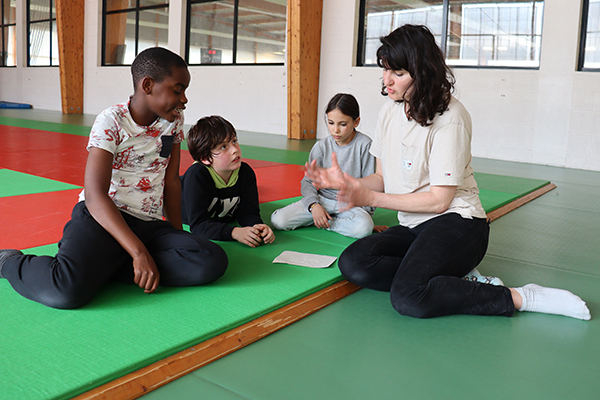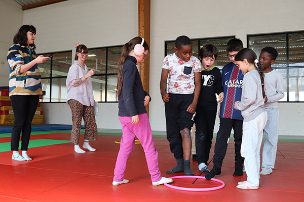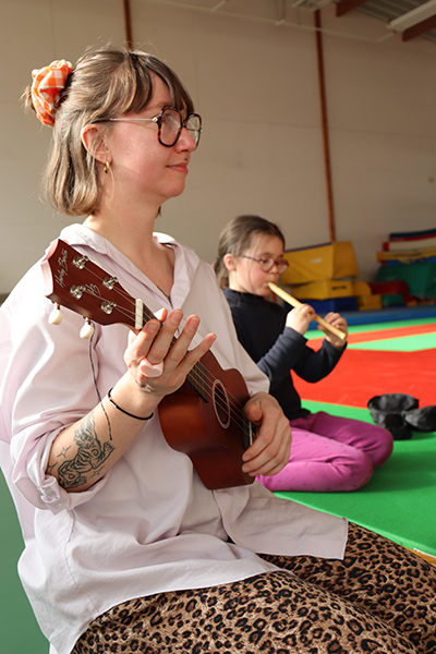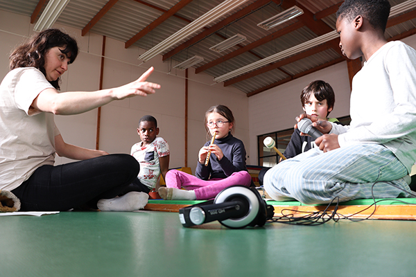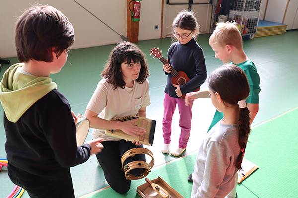 C’est avec beaucoup d’enthousiasme que les enfants ont accueilli Sarah Even, vendredi 20 mars à l’école Marie Talet. Il faut dire que les précédentes interventions de l’artiste médiatrice avaient déjà laissé un excellent souvenir. « Lors d’une première séance, nous avons découvert les différents métiers du spectacle à la salle du Quart’Ney », explique Sarah Even. « Pour la deuxième, je leur ai proposé d’installer eux-mêmes la salle pour un mini-concert de harpe électrique. Son, lumière, retours… chacun avait un rôle au sein de la régie, et tout le monde s’est investi avec plaisir. » Une approche particulièrement ludique, en parfaite résonance avec les objectifs du CLEA : favoriser la rencontre avec les œuvres, les artistes et les lieux culturels, tout en développant la pratique artistique. Pour cette troisième et dernière rencontre, le dojo de la salle des Plantes s’est transformé en véritable salle de concert, le temps de multiples jeux musicaux. Pour ouvrir la séance, Sarah Even a proposé un blind test original : plusieurs cerceaux disposés dans l’espace représentaient chacun un style musical, et les enfants devaient se placer dans le bon cercle selon la musique diffusée. Rap, reggae, classique, pop, électro, country ou rock… chaque extrait donnait lieu à des échanges nourris sur les raisons de leurs choix. Une manière simple et vivante d’aborder les spécificités de chaque univers musical : rythme, mélodie, instruments, phrasé, mais aussi émotions ressenties. « Le classique, c’est grandiose. Ça donne envie de danser, vous ne trouvez pas ? », s’amuse l’artiste. Les traditionnels jeux de statues musicales, pour travailler l’écoute, ou encore celui du chef d’orchestre, pour développer la synchronisation collective, ont ensuite précédé le dernier temps fort de la séance : l’écriture d’une chanson… et sa mise en musique, en moins de quinze minutes chrono. Un défi relevé avec brio grâce au “relais-chanson”. Après avoir choisi ensemble un thème, chaque enfant devait traverser le dojo pour écrire une phrase avant de revenir passer le relais à un camarade, chargé de poursuivre le texte. Une fois les paroles finalisées, place à la composition musicale. À grands renforts de percussions, ukulélé, mini-harpe, clavier et consoles, chacun a imaginé sa propre petite partition. De quoi créer, en quelques minutes seulement, une belle effervescence musicale… et de très beaux souvenirs.