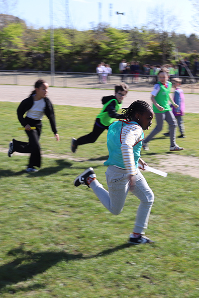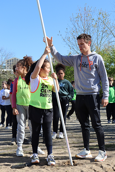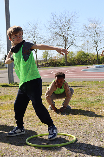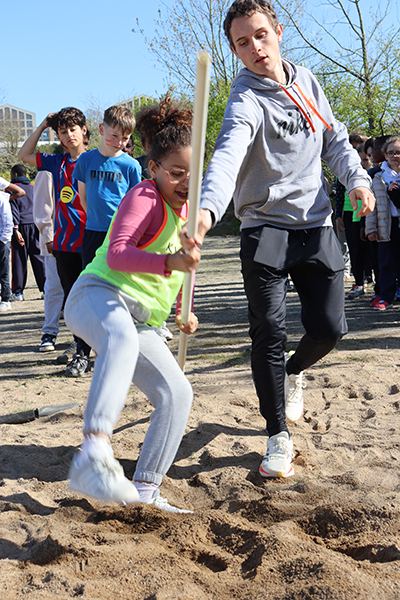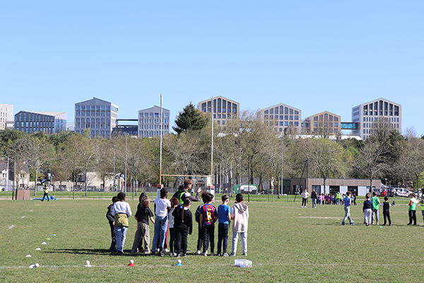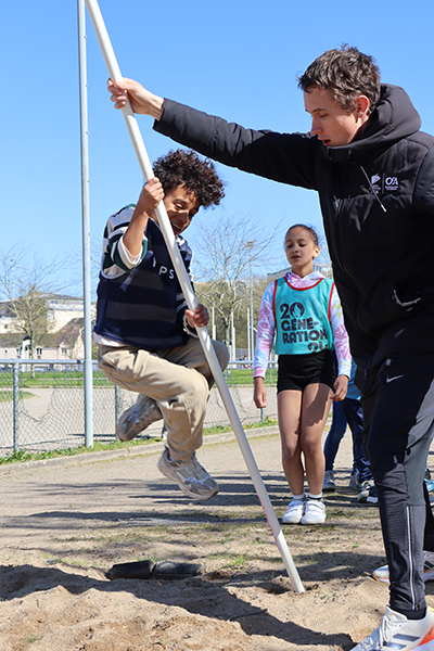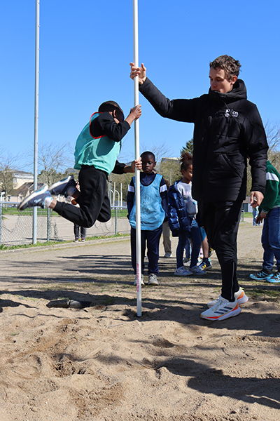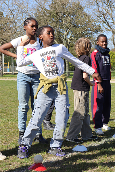 Vendredi 30 mars, 15 h 30. Les premiers bus arrivent au stade de la Baumette. À leur bord, des dizaines d’enfants de huit écoles de la Ville* sont prêts à donner le meilleur d’eux-mêmes sur la piste. Après trois mois d’entraînement, chaque lundi après-midi lors des TAP dans leurs écoles respectives, l’heure de la rencontre sportive a sonné. La motivation est au rendez-vous pour performer dans les trois disciplines au programme : le 50 mètres, le relais et le lancer du poids. Sur la piste comme dans l’herbe, les courses s’enchaînent, les poids s’envolent et les chronos s’affolent, pour le plus grand plaisir de ces jeunes athlètes. « Chaque enfant participe aux trois disciplines par roulement, sous la surveillance d’animateurs chargés d’évaluer les performances en vue du classement final », précisent Marion Quintard et Emma Heurtin, les deux animatrices pilotes de ce bel événement. « Les enfants bénéficient également d’une initiation au lancer du javelot et au saut à la perche. ». Ces apprentissages sont dispensés par des membres du comité départemental d’athlétisme. « Pour la perche, nous recherchons davantage les premières sensations, en initiant le mouvement de bascule, que la performance. Quant au javelot, nous utilisons plutôt des vortex, avec un travail sur le geste pour lancer le plus loin possible », expliquent les intervenants entre deux passages. Une après-midi bien remplie, conclue par un goûter bien mérité après tant d’efforts.